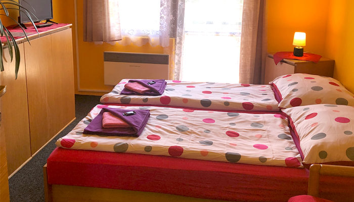 Dvoulůžkové pokoje s oddělitelnou manželskou postelí nabízejí pohodlí pro páry i přátele.